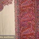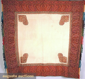 SILK & WOOL WHITE PAISLEY SHAWL, MID 19th C.