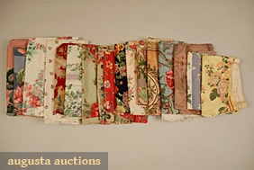 17 PRINTED COTTON FABRIC SAMPLES, 20th C