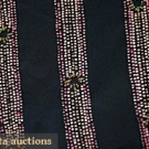 Navy silk w/ horizontal bands of pink, green & cream beads, excellent.